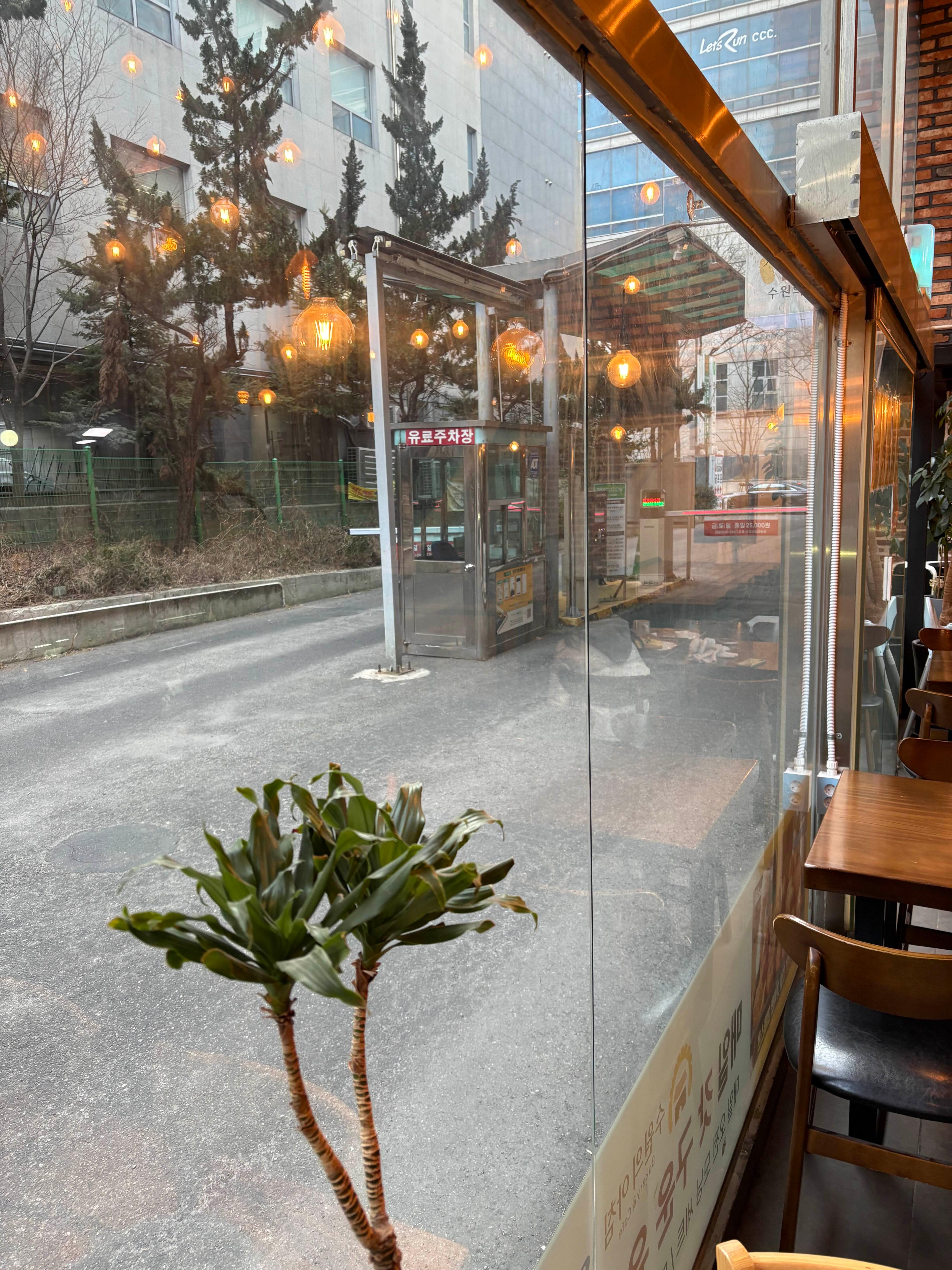 수원 가정법원 옆 상가, 동아프라자 1층(건물 뒷편 주차장 입구)에 위치한 카페입니다. 주차장은 1층 뒷편이 있으나 항상 만차인 경우가 많아 2층이나 3층에 주차 후 엘리베이터로 1층으로 내려오면 편리합니다. 카페 이용 시 2시간 무료주차 혜택도 제공됩니다.